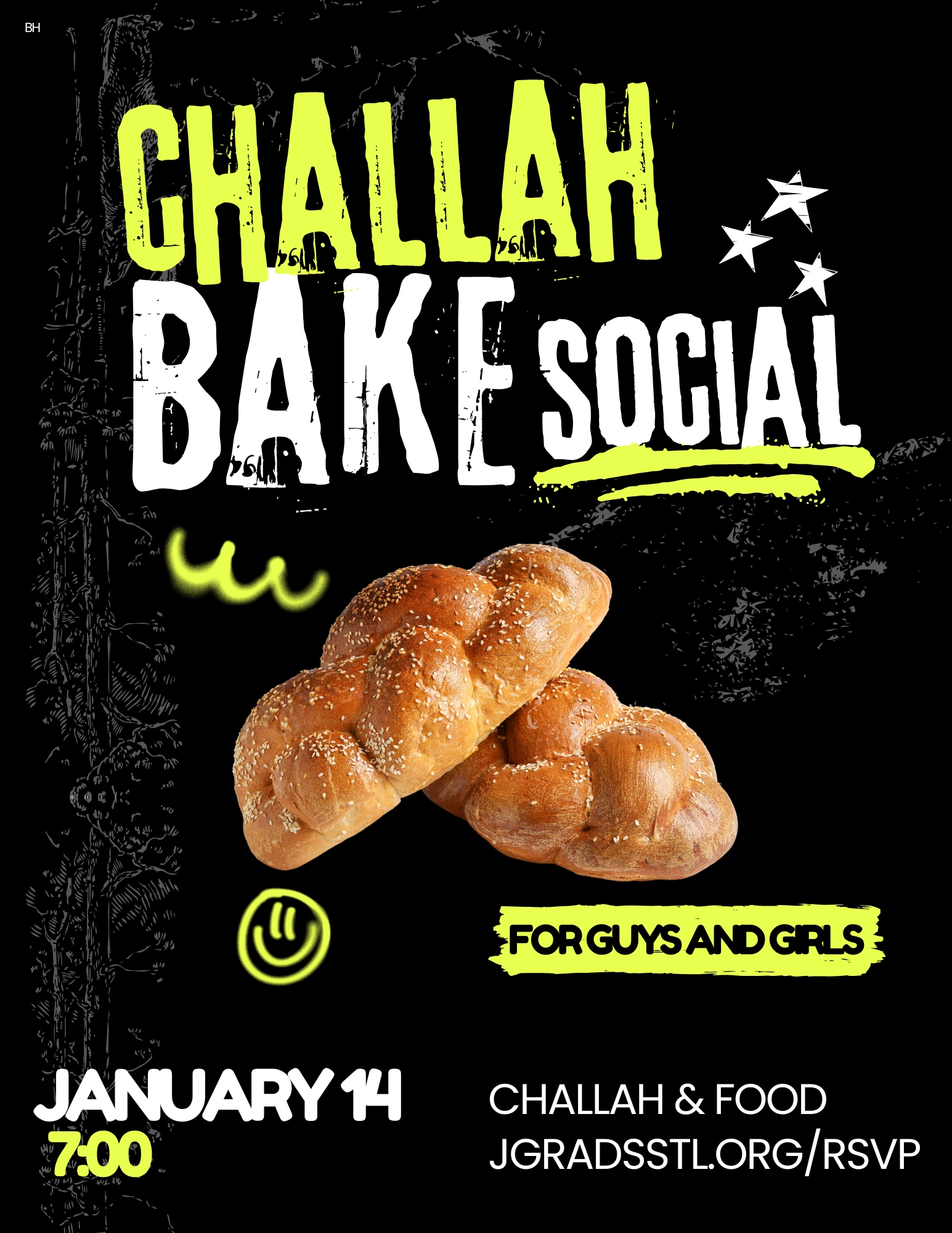 Fun, chill challah bake social for guys and girls.